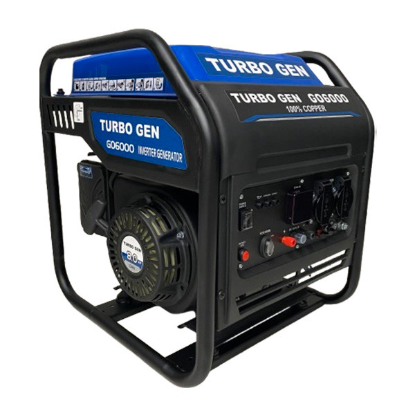 موتور برق اوپن فریم اینورتری توربوژن 4.2 کیلووات مدل GO6000 به سفارش آلمان ساخته شده است. این موتور برق با دارا بودن، برد اینورتر و سیم پیچ 100 درصد مس، برق ثابت و پایداری را برای مصارف خانگی و تجهیزات حساس به نوسان برق تولید می کند. از این ژنراتور برق برای تامین برق باغ، کارگاه، مراکز تجاری وتجهیزات نیمه صنعتی استفاده می شود. از ویژگی های و مزایای عالی موتور برق توربوژن اینورتر 6000، می توان به بدنه فولاد مقاوم و پوشش ضدزنگ، چرخهای مقاوم و دستههای ارگونومیک، مصرف بهینه سوخت، توان خروجی یکنواخت، نمایشگر دیجیتال پیشرفته(نمایش ولتاژ، فرکانس،ساعات کار) اشاره کرد.