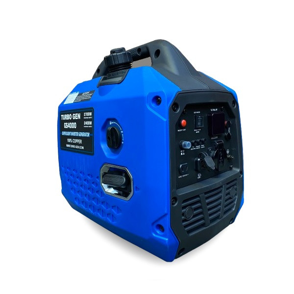 موتور برق توربوژن سایلنت 2700 وات مدل GS4000، برای مصارف خانگی، کمپین، گردشگری، باغ ویلا، کامپیوتر، شارژ باتری و لپ تاپ مناسب می باشد. موتور برق توربوژن 4000 کیفی بی صدا، دارای برد اینورتر، ولتاژ 230 ولت پایدار با فرکانس 50 هرتز ثابت می باشد. موتور برق سایلنت توربوژن GS4000، دارای سیم پیچ مس، توان ماکسیمم 2700 وات، توان دائم 2.4 کیلووات، با وزن 21 کیلوگرم و نمایشگر دیجیتال سه کاره می باشد. این موتور برق بنزینی به صورت هندلی راه اندازی می شود. صدای کم، حمل آسان، برق ثابت از ویژگی های موتور برق سایلنت توربوژن مدل 4000 می باشد.