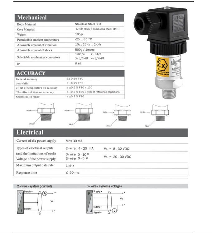 ۲wire : ۴ – ۲۰ mA Vs. = ۸ – ۳۲V