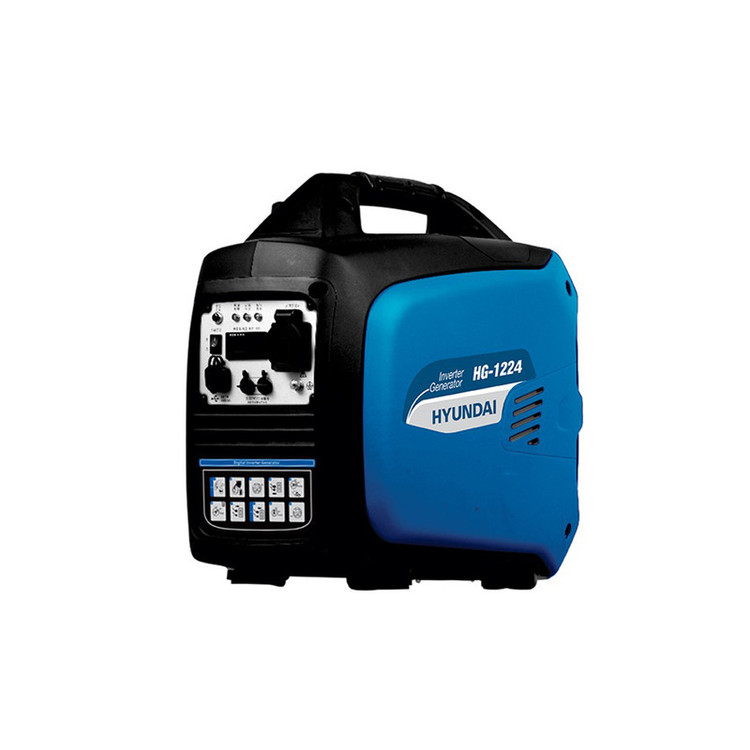 ژنراتور اینورتر 2400 وات (هندل دستی) هیوندای مدلHG-1224 دارای موتور تک سیلندر 4 زمانه میباشد . همچنین مجهز به سیستم استارت هندل دستی است. ظرفیت سیلندر این وسیله 97/7 سی سی و حجم مخزن سوخت آن 4 لیتر می باشد. وزن دستگاه 18 کیلوگرم است.موتور برق تجهیزی است که انرژی مکانیکی حاصل از عملکرد موتور احتراقی را توسط ژنراتور به انرژی الکتریسیته تبدیل میکند .امروزه برای استفاده از وسایل برقی در فضاهایی خارج از بافت شهری مانند ویلاها، باغ ها، استخر و آب نماها که از شبکه سراسری برق بیبهره میباشند از این ابزار استفاده میشود . در زمان قطع برق شبکه سراسری نیز برای تامین برق اضطراری دستگاه های کوچک یا خانه های مسکونی، مطب پزشکان و موارد مشابه، موتور برق مورد استفاده قرار میگیرد.