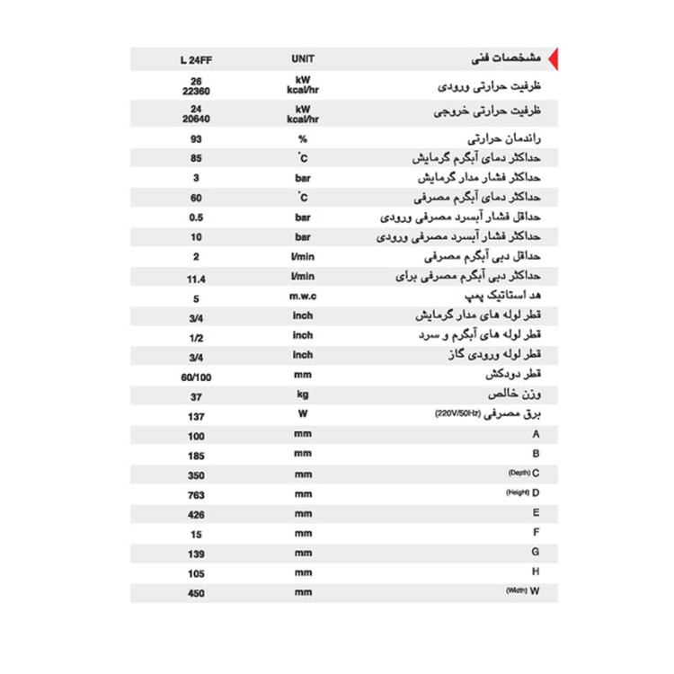 پکیج شوفاژ دیواری ایران رادیاتور مدل L24FF